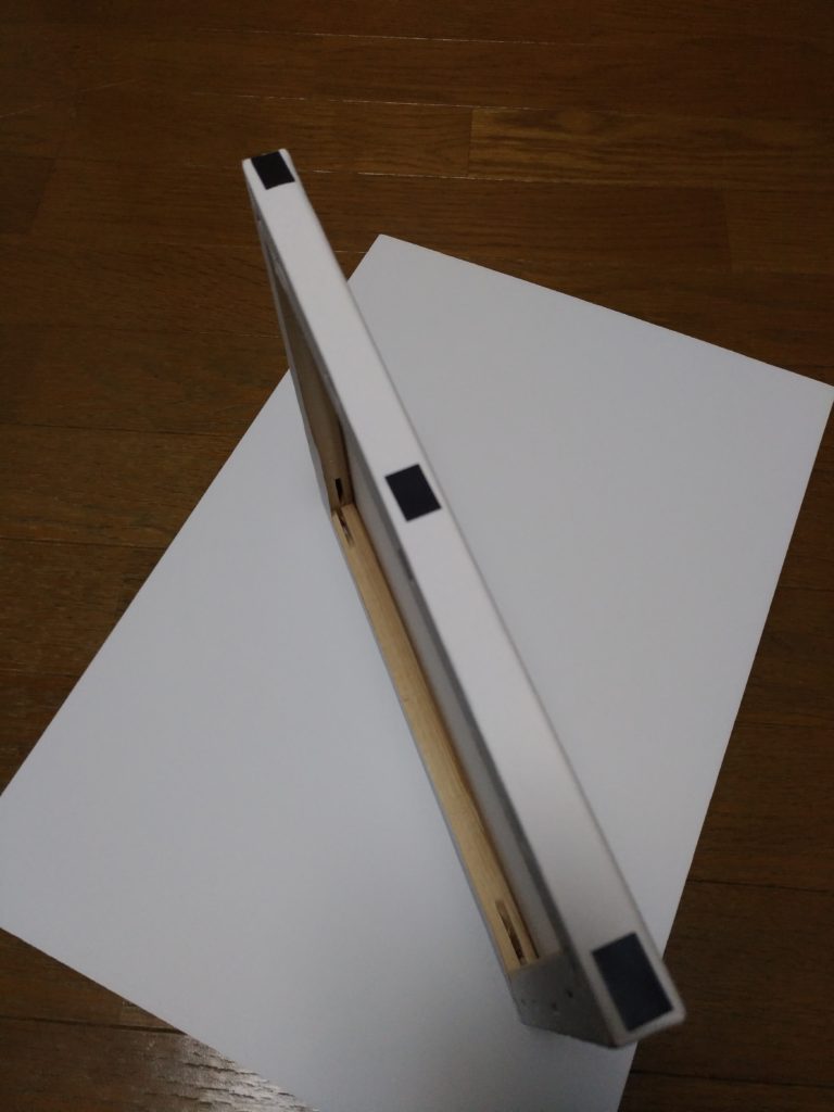 両サイドのキャンバス側面にこういったマグネット(磁石)を貼り付けて…