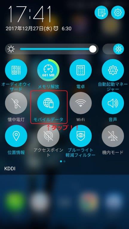 ネットに接続したい場合は、再度「モバイルデータ」をオンにすればOKですよ!