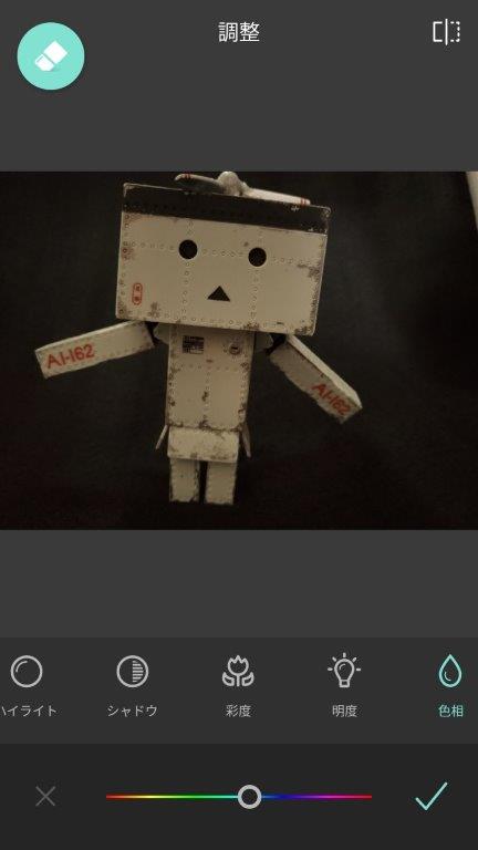画像編集アプリで色相と彩度を少し調節して色味を修正する