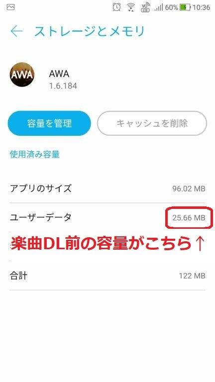 AWAのダウンロード再生機能で使う容量を検証してみた