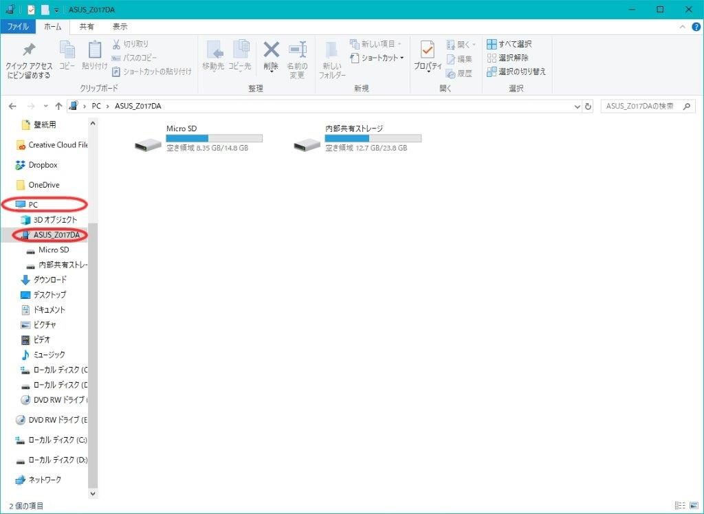 エクスプローラーを起動して、PC→接続したスマホを選択すると