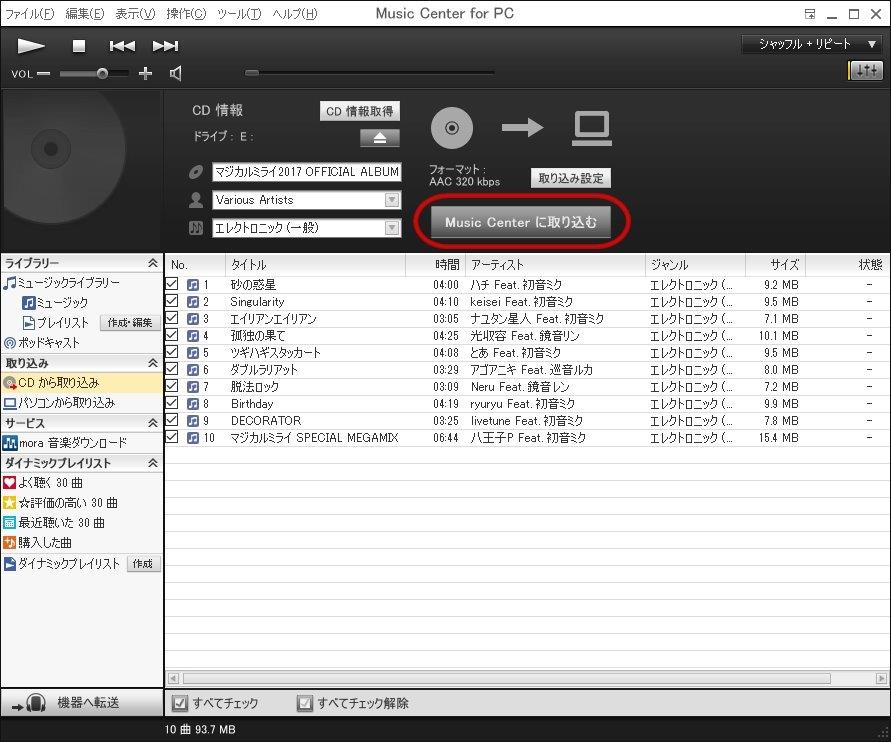 私はパソコンでMusic Center for PCというソニー製のプレイヤーを使っていますので、